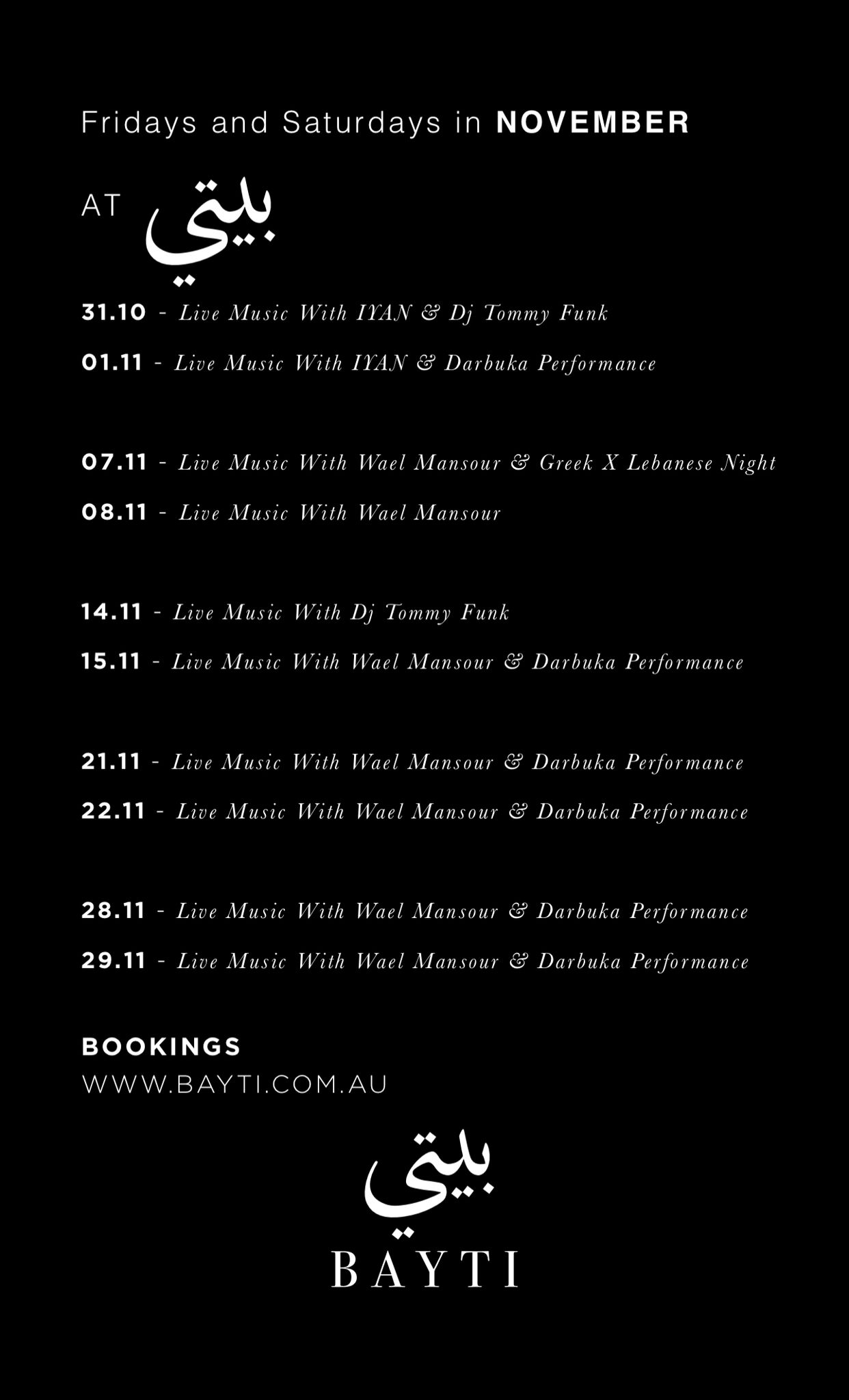 LIVE ENTERTAINMENT - NOVEMBER - 1st November