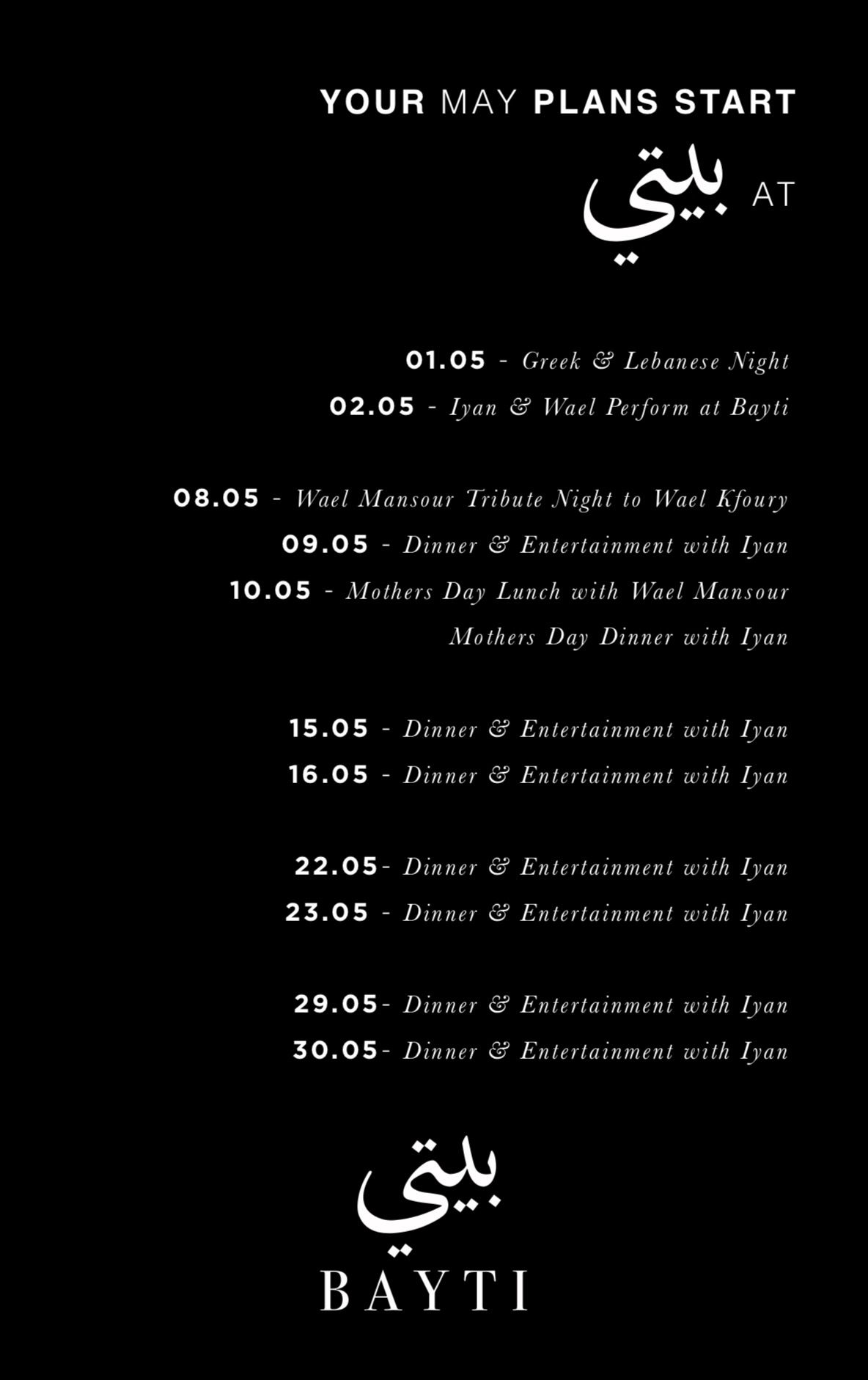 What's Happening At Bayti In MAY
